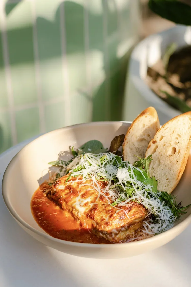 Made with bolognese, mozarella cheese, and bechamel sauce, served with an arugula salad. 380g.